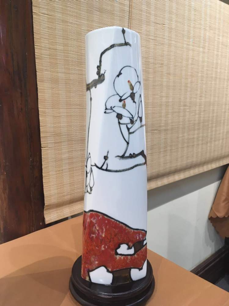 而这次展览的举办地点和上海中心近在咫尺只是巧合。这个由史军萍、朱峰策划,由上海吴昌硕纪念馆、上海乐合文化产业发展有限公司主办的《交相辉映——尉涧松炫彩瓷艺、陈秋生水墨丹青艺术展》,不但是当代瓷艺和水墨丹青的交相辉映,也是陆家嘴百年老宅与现代化摩天大楼的交相辉映。
