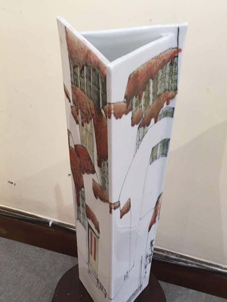 我们请教了瓷艺的作者、艺术家尉涧松,他说,创作这批瓷艺时,从未想到与上海中心大厦撞形,但是现在这么一提起,倒是有点像。