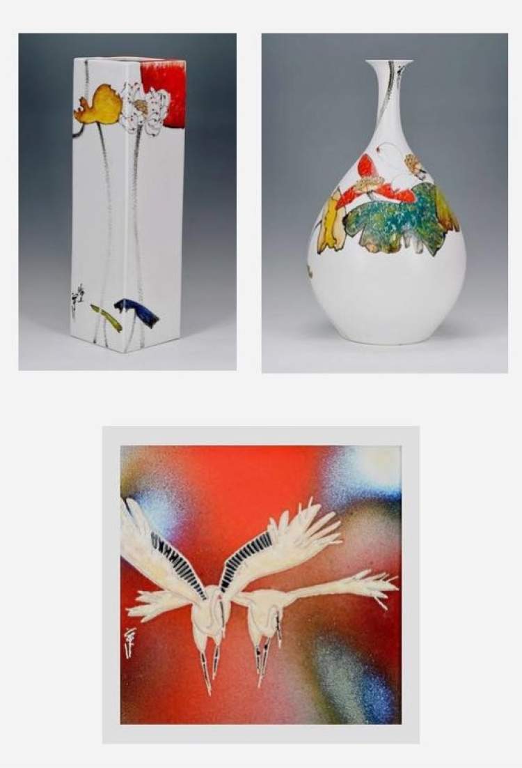 参展瓷艺家尉涧松曾就读于上海交通大学工艺美术专业,他对高温窑变陶瓷壁绘兴趣浓厚,并立志将传统写意绘画与陶瓷艺术相结合,进行了几十年的创作实践,终于将淋漓水墨和窑变色彩融为一体,形成了富有现代绘画构成、个性鲜明的瓷艺风格。其作品不仅在国内屡屡展出,还远赴日本、英国、比利时、西班牙展出并获奖,作品被多家博物馆和机构收藏。
