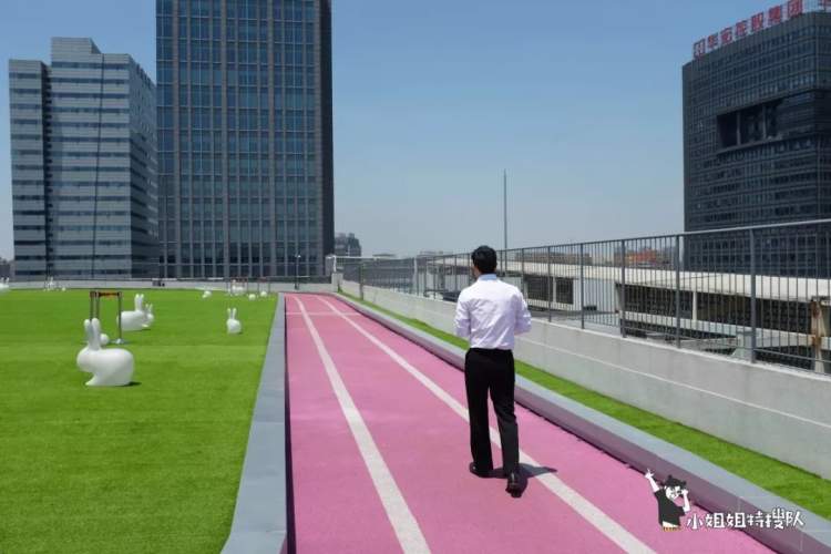 走上边上的粉色楼梯,就是一个超大露台啦。不得不感叹,长风公园等地标性建筑在眼皮底下一览无余,硕大的城市美景尽收眼底!