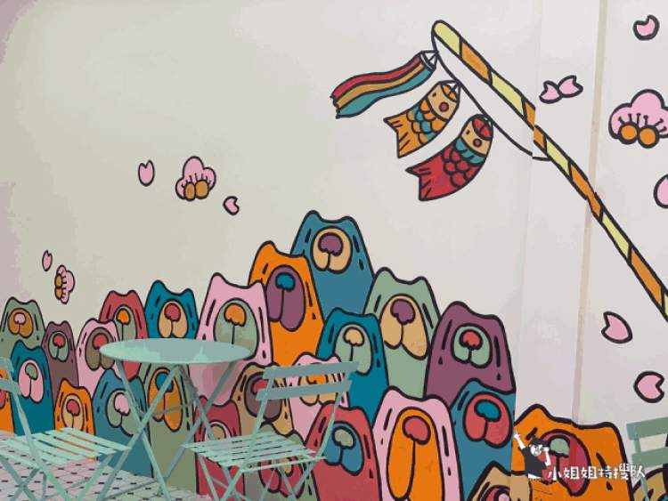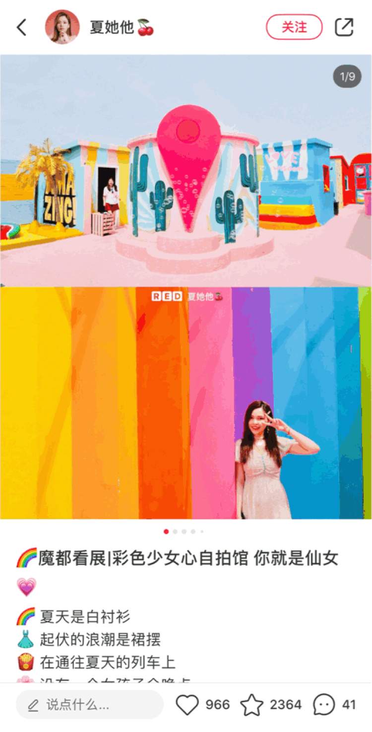 这家店大量使用了鲜艳的颜色,一看就是RMB玩家!有很多彩虹色的场景,穿着一身白去合影的话会非常非常仙~