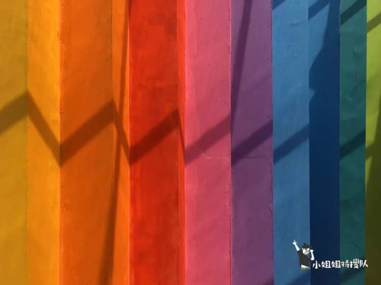 首先是这面彩虹墙,怎么拍都很色彩缤纷,相当夏天了!