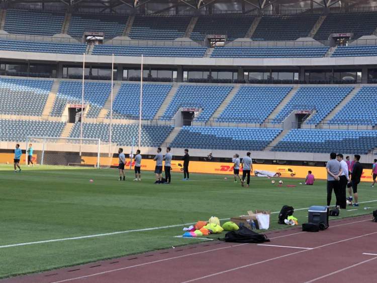 从今天赛前的训练看,全队气氛不错。跟以往抢圈游戏不同的是,今天所有队员围成一个大圈进行抢圈。弗洛雷斯和他的助手在旁边围观,还不时点评两句。队员们则是时不时地传出笑声和掌声。后来,弗洛雷斯又将所有队员分成三组,进行小范围的分组对抗,输掉的一组的惩罚就是搬球门。最终队长莫雷诺所在的一组输掉了这轮游戏,队长冲在最前面,带着自己小组的队员一起将球门搬到场边。