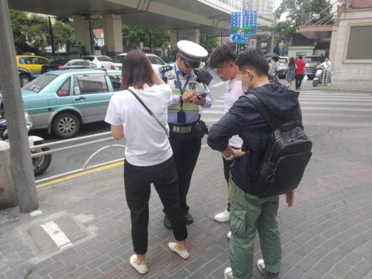 5月25日,长宁交警在延安西路武夷路路口拦下两名闯红灯的行人,反复向两人强调闯红灯的危害性。民警在查询了两名当事人的信息后,分别予以警告,并阐释了上海目前实行的行人交通违法“累进式”执法:即前两次教育记档,第三次违法坚决处罚。两人都表示,今后将自觉遵守交通法规,绝不再乱穿马路。