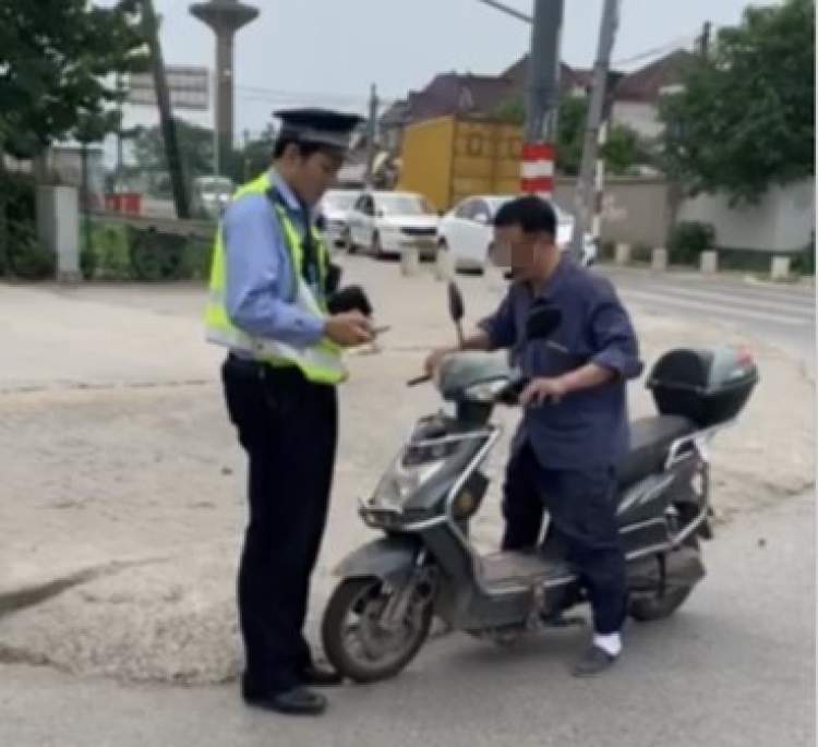5月24日,松江交警在荣乐西路三新路路口,拦下一辆逆向行驶的电动自行车,对当事人王某某处以罚款50元的处罚。