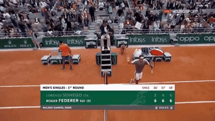 北京时间昨晚,在法网第一轮比赛中,费德勒以6-2、6-4、6-4直落三盘击败了意大利新秀索内戈。