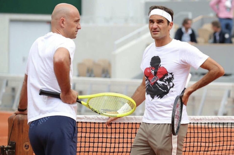 在前几天的训练中,费德勒穿的休闲T恤从超级玛利亚到街霸,画风可爱。