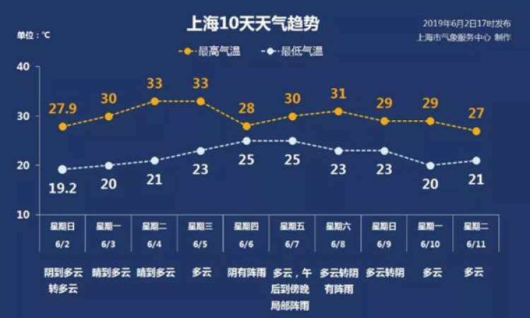 本周初维持晴好天气;周四会有一次明显的降水过程;周五也就是高考第一天,同时也是端午佳节,多云,午后到傍晚局部地区有阵雨;端午假期后两天会和这次六一双休日的天气相似,多云为主,后期转阵雨或者阴天,降水比较微弱。气温方面,本周初气温将会逐日回升,周中的最高气温可能会超过33度,周后期气温又会回落至30度附近。