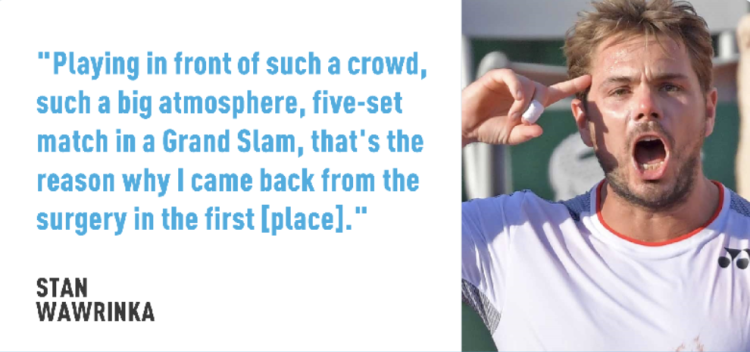 他说:“在这样的球迷面前打比赛,经历这样的氛围,赢下这样一场大满贯5盘大战——这正是我当初手术后仍然坚持复出的原因。