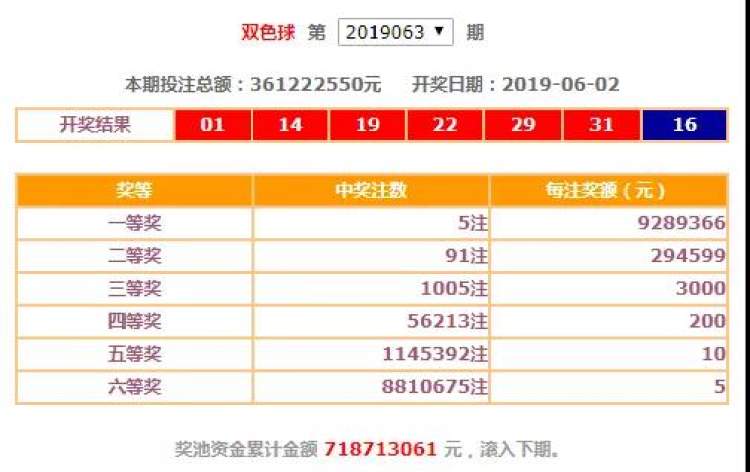 昨晚,中国福利彩票双色球游戏进行第2019063期开奖。当期双色球红球号码为01、14、19、22、29、31;蓝球号码为16。