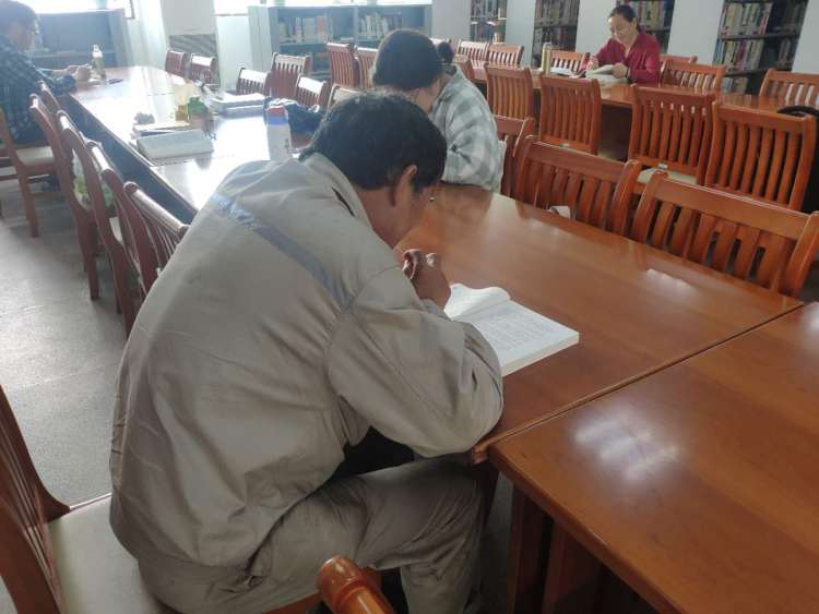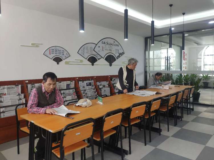 2楼还有报刊阅览室,几位老者正在翻看报纸。