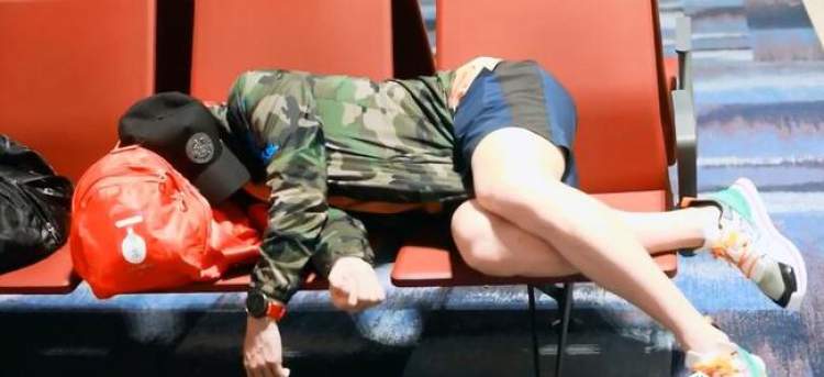 然而,这样一位大满贯得主,却被网友曝光了蜷缩在机场补觉的画面:当时龙队穿着长袖衣服,蜷缩在候机室的长凳上睡着了。