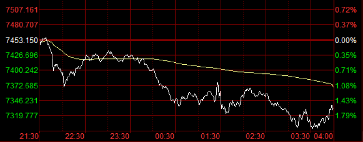 来看美股的具体情况,至收盘,道琼斯工业平均指数上涨4点,涨幅0.02%,收报24820点;纳斯达克综合指数下跌120点,跌幅1.61%,收报7333点;标普500指数下跌7点,跌幅0.28%,收报2744点。