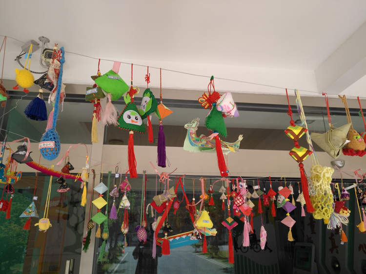 5月27日早晨,同学们手捧利用废弃物品做成的粽子、香囊和龙舟,小心翼翼地贴上姓名贴,交给班主任老师,为装扮“葵园端午”贡献自己的一份力量。