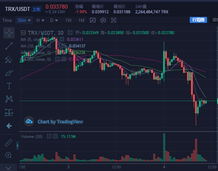 至少从现在来看,这条消息的传出虽然让24小时Twitter中波场的官方币TRX讨论量超过BTC,但进场的用户似乎并不多,还一度出现了下跌的趋势。