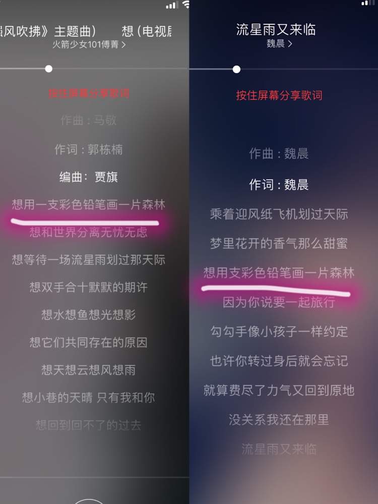 《想》的第一句“想用一支彩色铅笔画一片森林”,与魏晨的《流星雨又来临》的“想用支彩色铅笔画一片森林”高度相似,而被网友扣上了抄袭的帽子。