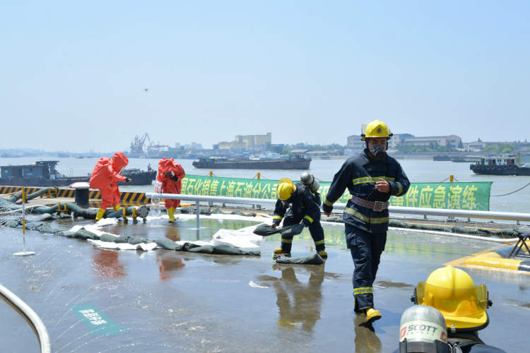 突然,码头上警报声长鸣,由此拉开了上海石油油库码头突发环境事件联合应急演练的序幕。