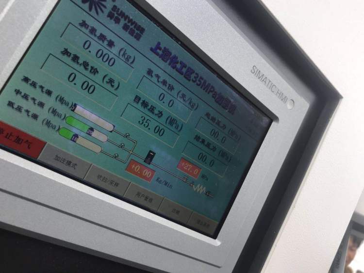 在这座规模庞大的加氢站内,记者看到储存区、加注区严格分开,多台氢动力汽车可以同时加注,一台大通燃料电池汽车正在加氢,通过专用的加注口,加注器与车辆相连,不到5分钟,加氢动作就完成了。