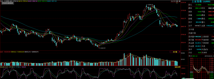 今天,受欧美股指大幅上扬影响,沪深两市三大股指大幅高开,但盘中缺乏资金承接,很快由升转跌,盘面氛围较差。股指随即展开震荡走低再回升的走势;午后,券商、农业、房地产和稀土永磁板块一度跃跃欲试,眼见大盘有所企稳,但资金增量有限,导致做多情绪再次衰竭,最后沪市收出小跌,不过,关键的2850点仍在多头手中。