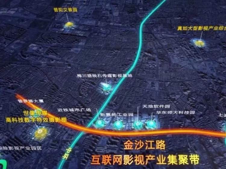 2016年起,普陀区提出打造“金沙江路互联网影视产业集聚带”,积极融入上海影视产业“1+3+X”发展布局,截至目前,已集聚了阿里影业、淘票票、联瑞影业、银润传媒、世像传媒、苏宁环球传媒、盛万文化、金影科技等近130余家影视企业,制作发行了《红海行动》、《唐人街探案2》、《天下粮田》等极具票房号召力和社会影响力的影视作品。