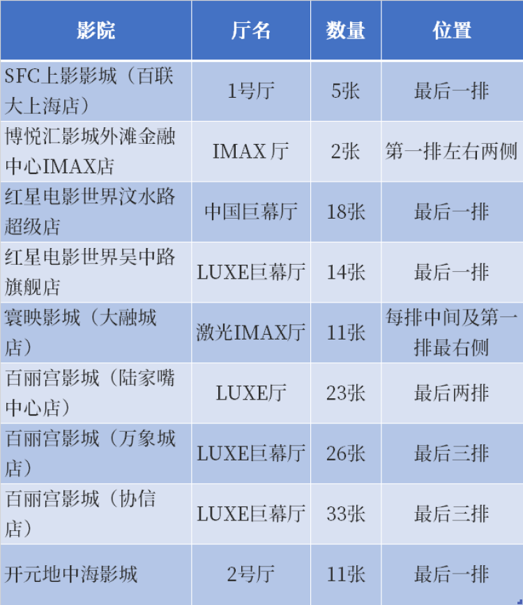 周到君通过购票平台查阅了各家影院的参展影厅,各家影院情侣座数量及位置详见↓↓↓