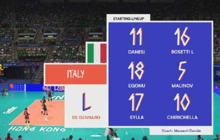 今晚再次交手,意大利派出了去年世锦赛的原班人马。
