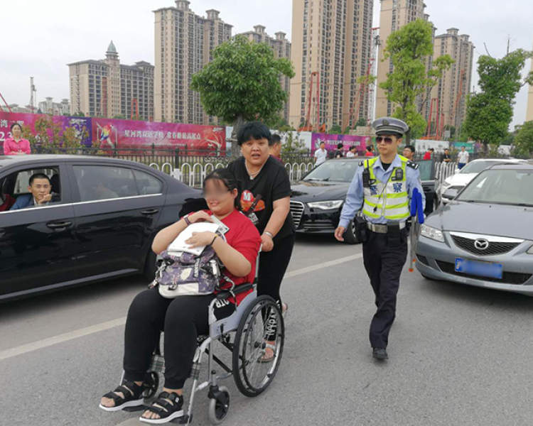 除了“糊涂”考生需要民警的帮助,身体不便的考生同样得到了民警的帮助。早上7点30分左右,在田园高级中学考点,有一名腿部受伤考生到考点周边下车后,由其家属用轮椅推往考场。民警吴向军见其行动不便,主动上前帮他们拿上拐杖,疏导旁边车辆,护送考生安全进入校门。