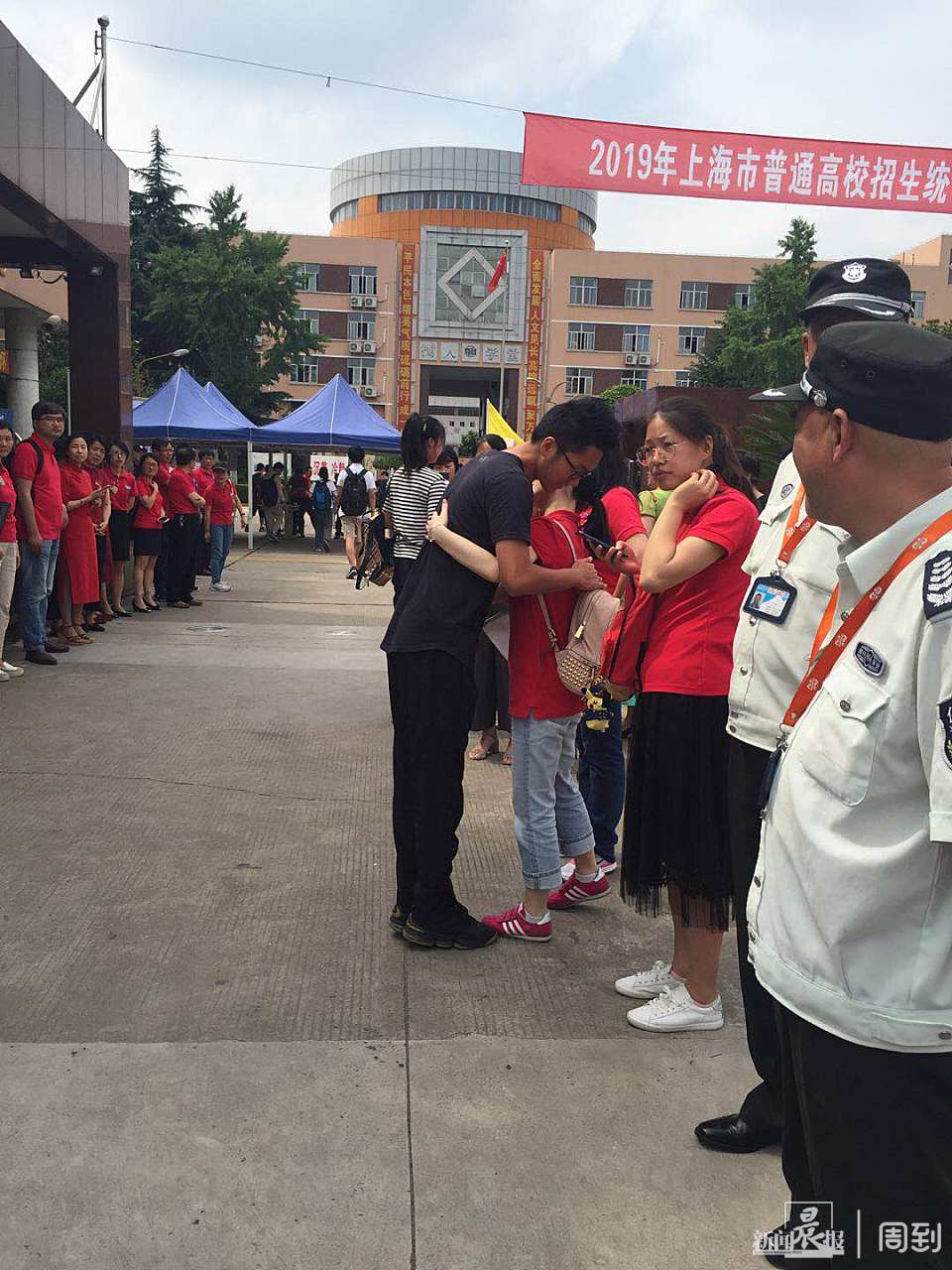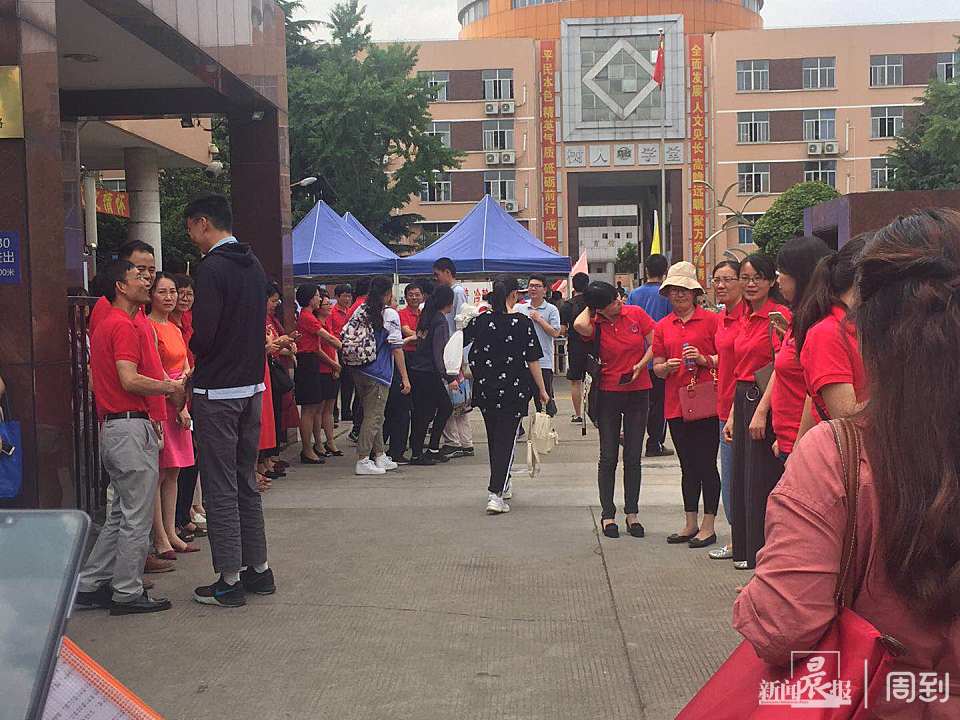七宝中学考点,下午两点半,2019高考数学还有半小时开考,与上午相比送考家长减少一半。
