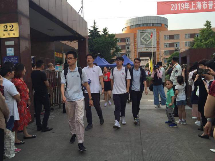 华师大一附中考场外,一位女生走出考场后对父母说“爆难”,好多题目的答案都不确定。有的则说“还好”,有两位男生说,除了19题应用题和21题数列题难一点,计算烦一点。其他的题目都中规中矩,“感觉又做了一次二模考,难度差不多。”另外一位男生表示,自己做得很顺,就是最后一道不确定,“不知道能不能蒙对”。