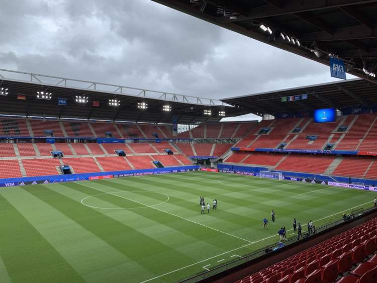 一大早,中国女足主帅贾秀全和队长吴海燕穿着羽绒背心来到Roazhon Park球场实地探测了一番,球场的草皮情况超出了预期。他们说,能在这么好的场地比赛,队员应该会觉得非常兴奋。距离第一场和德国的小组赛只剩一天了,球队准备好了吗?