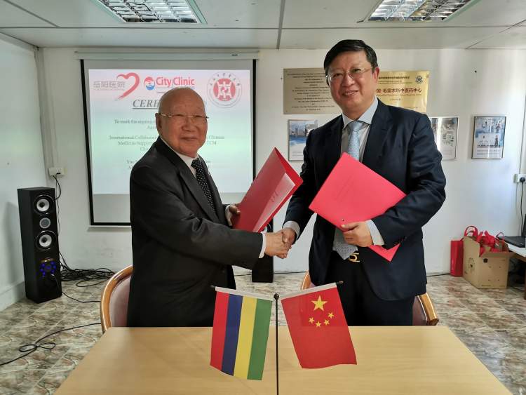 北京时间2019年6月6日下午2点,国家中医药管理局国际合作项目"中国-毛里求斯中医中心”战略协议签约仪式在毛里求斯城市医疗集团City Clinic举行。