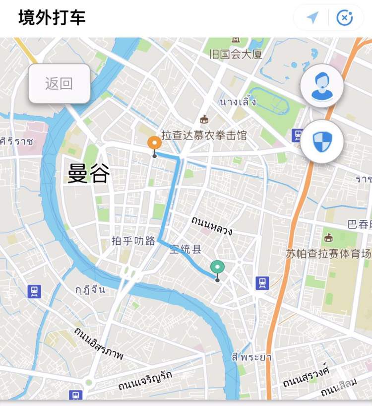 身在泰国的崔女士使用Grab和支付宝同时从位于曼谷的Yaowarat Road打车前往自己所居住的酒店,平均一分钟左右,支付宝和Grab都有司机接单。