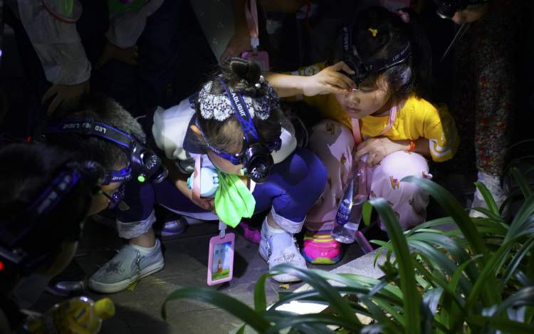 上海植物园的暗访夜精灵活动已经开展十多年。孩子们可以在自然导赏员的带领下,走进夜间的植物王国,遇见萤火虫、金线蛙、小龙虾、竹节虫、壁虎、蜈蚣、马陆、蛞蝓等生物。具体信息可关注上海植物园微信了解。
