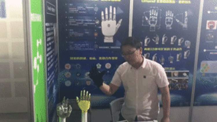 在生物医药展区,上海傲意信息科技有限公司带来了全球首款人工智能模式识别仿生手,现场的工作人员演示了机械手左右手皆可抓取水杯,写字等精密活动,而且每一个手指都可以单独操作,共计可实现18种精细运动,宛如带上了灭霸手套一般。