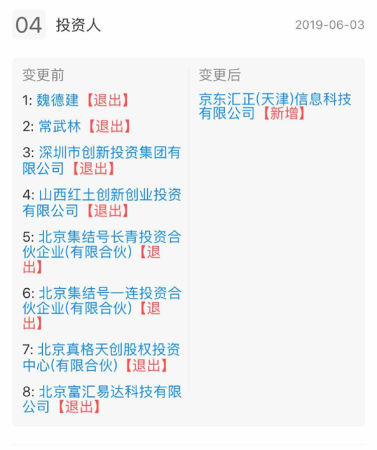 近日,聚合支付哆啦宝发生工商信息变更,原来的8个自然投资人和控股股东全部退出,现在京东旗下京东汇正是唯一投资人。