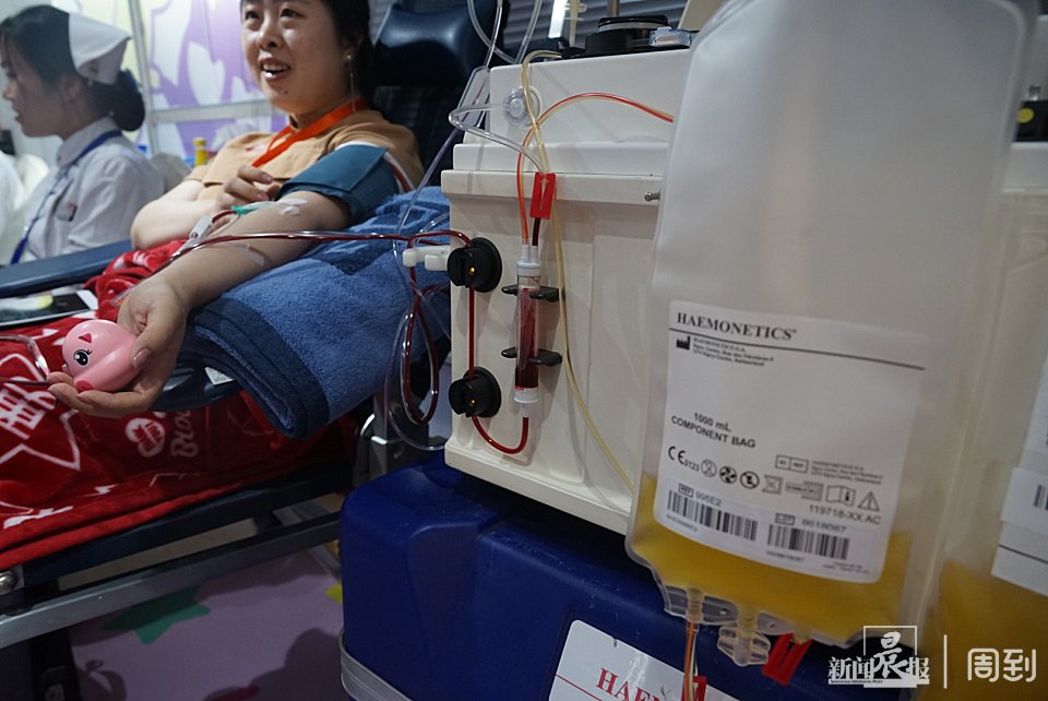 在进行献血登记、健康征询、血液检测等流程后,小尚的血液检测合格,就可以进入血液采集环节了。