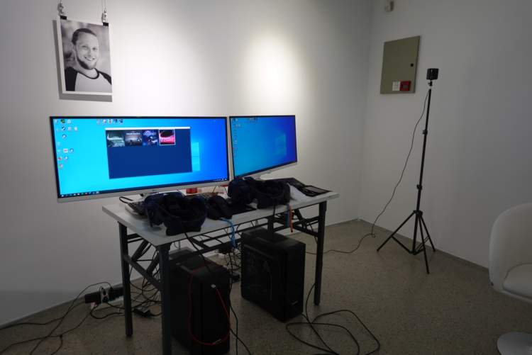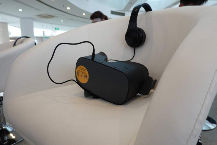 最明显的区别在于设备。互动体验使用的是HTC Vive,360°影片用的是Pico一体机。前者可以运用操作手柄进行互动,用工作人员的安利来说,“你在这部影片里可以自己划船!”后者则可以像传统电影一样坐着欣赏,但需要时不时运动一下脖子。