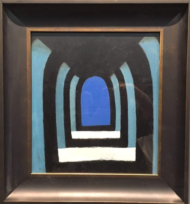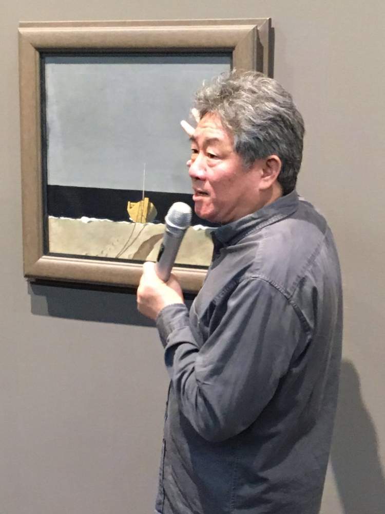 什么叫主观?比如这幅1986年表现海边风景的作品,看得出是在画海,但好像又有点异样。画面分三个部分,上部是阴天海上的灰色天空,中部黑色海面是晚上才有的海的颜色,下部沙滩是下午三四点钟时的阳光色彩——三个不同时空的海拼成了一个完整的画面。虽然还是画客观,但艺术家的主观性介入了创作。