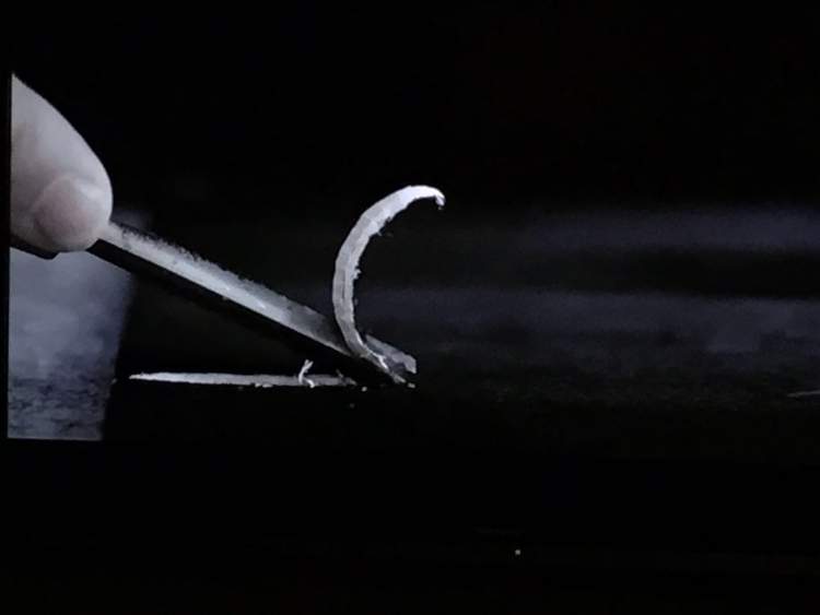 展览中最重要的作品《+40m》,艺术家花了6个小时时间,用圆口木刻刀在木板上徐徐行刀,刻出一根40米长的线条。