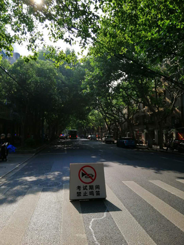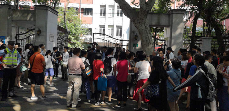 虹口曲阳二中考点,一早维护考点秩序的警察早早就到岗了。