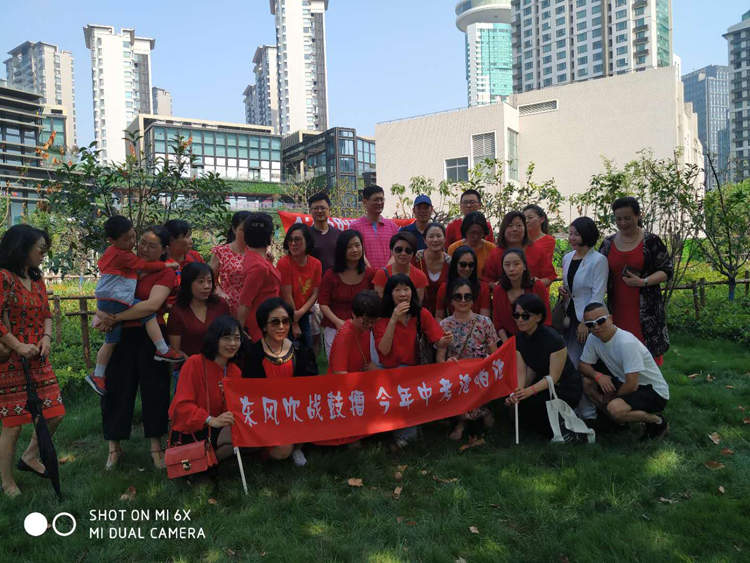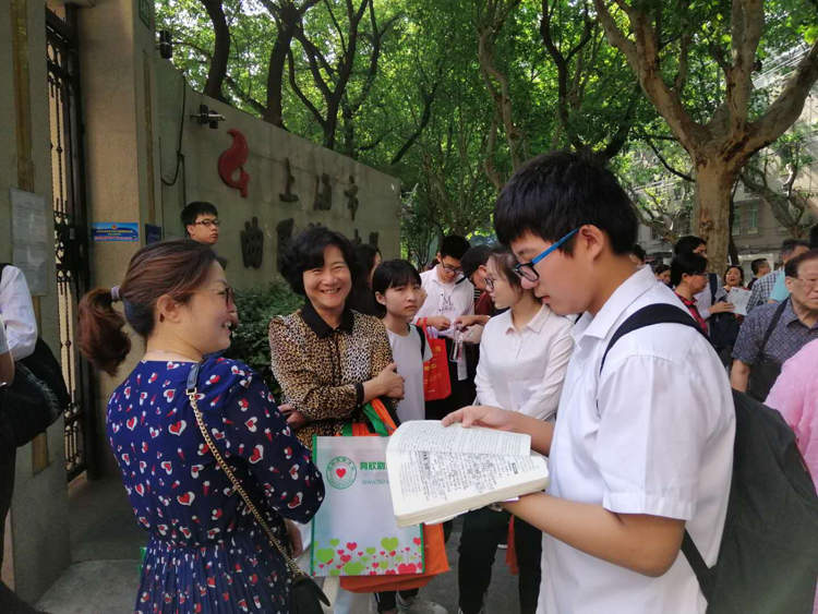 建平香梅中学,是进才实验中学学生们的中考考点,杨龙校长亲自送考,他和老师们身穿红衣助考