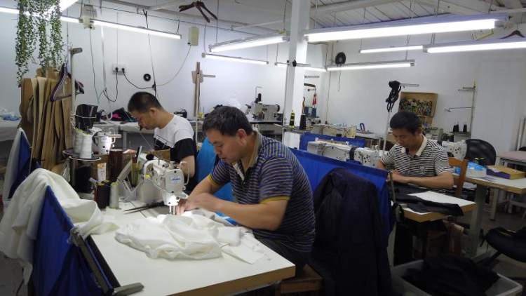 记者在现场看到,小车间里“五脏俱全”,有的师傅在图纸上画样,有的埋头在缝纫机前,有的正将工序过半的衬衣仔细熨烫——除了标准尺码的男装外,其他的定制服装都在这里完成。