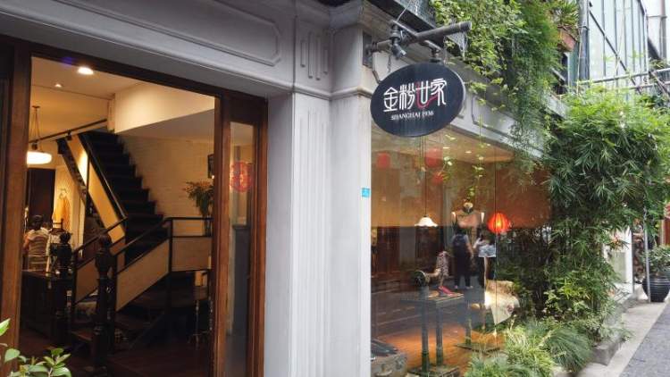 李嘉陵的“金粉世家”开在田子坊内,门外几步远处便是一个大大的箭头:此处通往石库门风貌区。由于文创产业集中,也因为游客众多,这里是不少中式、海派服饰店铺的聚集区。