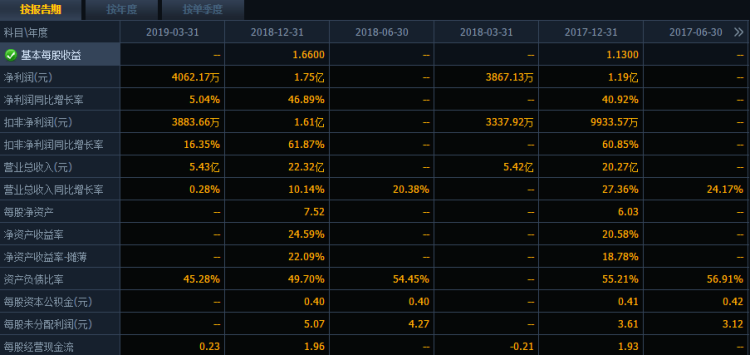 据了解,新化股份主要从事脂肪胺、有机溶剂、香料香精、双氧水及其他精细化工产品的生产、销售。公司2019年1季报营业总收入5.43亿元,同比增长0.28%,净利润0.41亿元,同比增长5.04%。公司预计半年报净利润9100万元-9300万元,增长幅度为1.26%-3.49%,基本每股收益0.87元-0.89元。