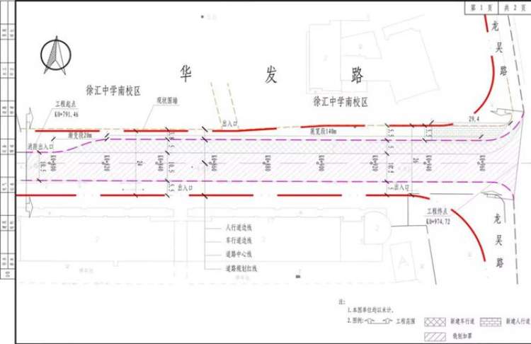 于是,华泾镇人民政府聘请了上海市政设计院,对华发路的路况进行专门研究,希望根据实际情况挖掘现有道路设施潜力。经过反复论证,发现华发路潮汐现象十分明显,早高峰西向东驶入龙吴路方向的流量远高于东向西方向,晚高峰则相反。同时,华发路道路红线24米,至龙吴路交叉口红线宽26米,可以充分利用道路红线,增辟车道进行交叉口展宽渠化。