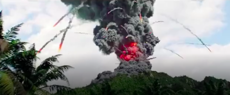 在《天火》首款先导预告中,天火岛一片祥和安宁,度假村总经理号称岛上的火山未来150年内都不会喷发,并向投资人承诺他们的酒店是世界上“最安全的地方”。然而镜头一转,天火岛惊现规模巨大的火山爆发。