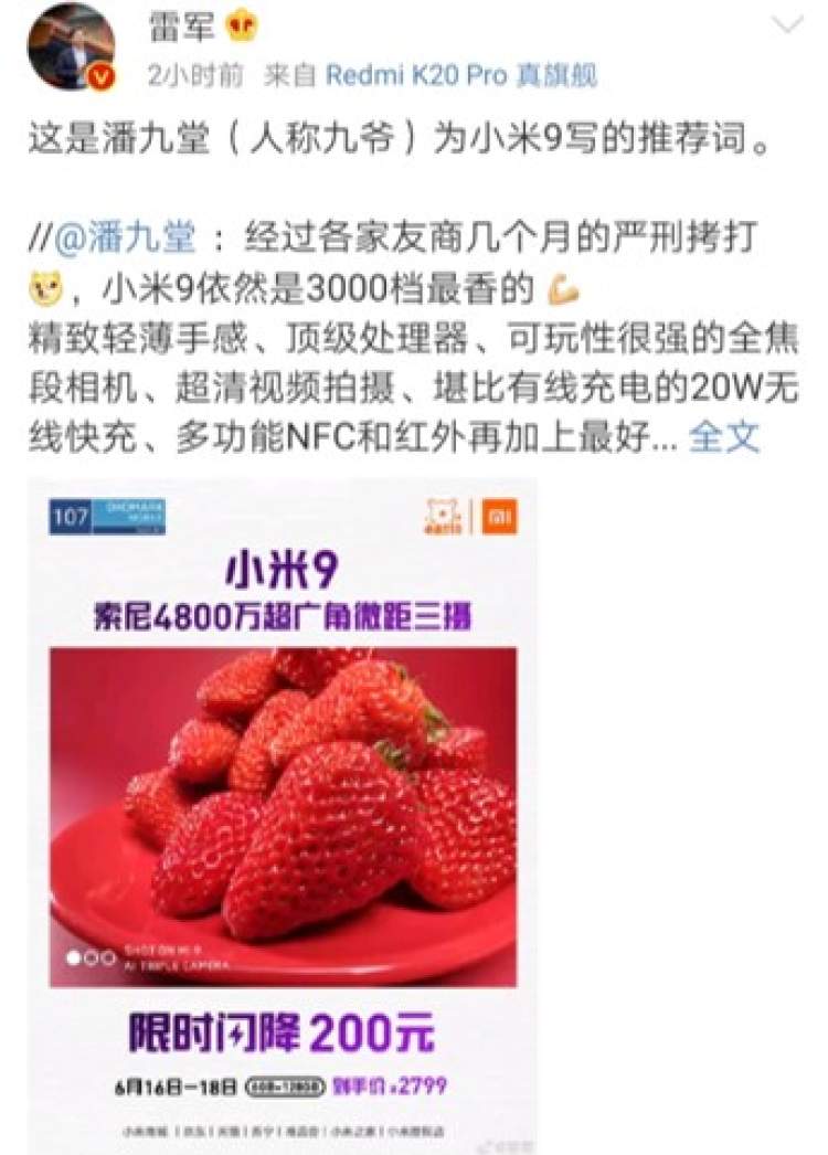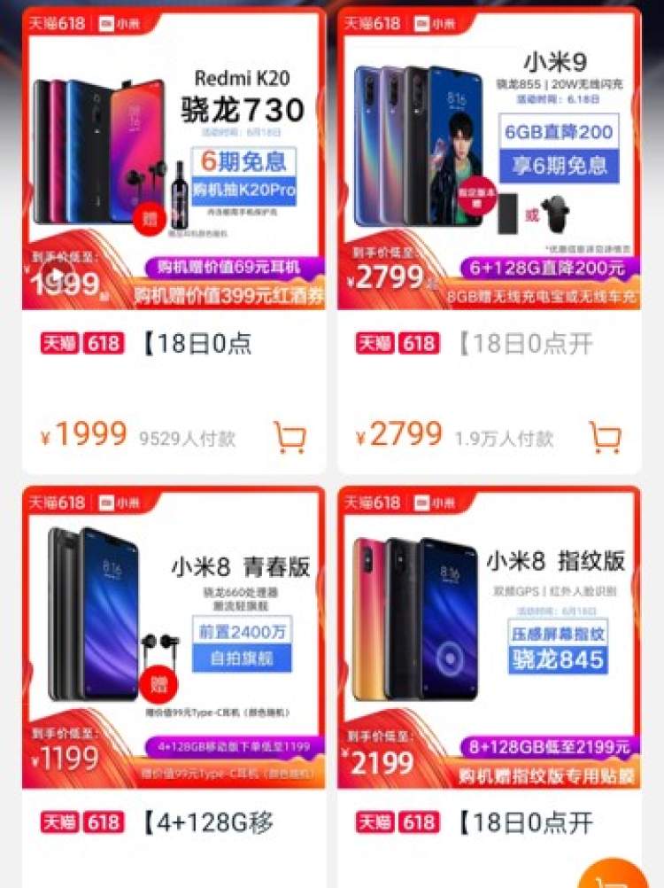 6月18日,小米董事长雷军宣布,小米9新机开启限时降价。小米9的6+128GB版本由2999元将至2799元,降价将持续到6月18日。