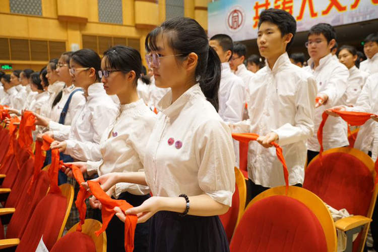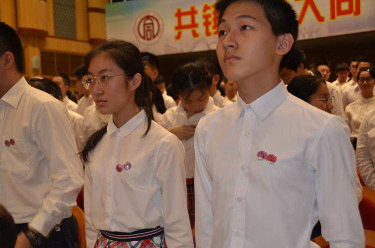 每一位2019届的初三学子获赠学校颁发的纪念校徽,颜色是桃红,与老师的校徽颜色一样,蕴含“桃李满天下”之意。今天上午,上海市民办立达中学2019届初三毕业典礼暨授校徽仪式举行。