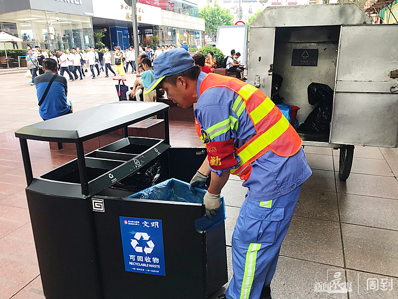 桶量减少了,收集的次数增加了,对于平永书来说,他每天在南京路上奔波的次数翻了个倍。“工作量大了,但很多令我们欣喜的现象也多了起来。”平永书兴奋地说道,“市民、游客的文明素养和自觉性提高了,绝大多数游客不但自觉地不乱扔垃圾,而且还对垃圾进行分类投放。虽然垃圾箱少了,但很多游客在我们的礼貌劝导和引导下,都自觉把垃圾带走了。”
