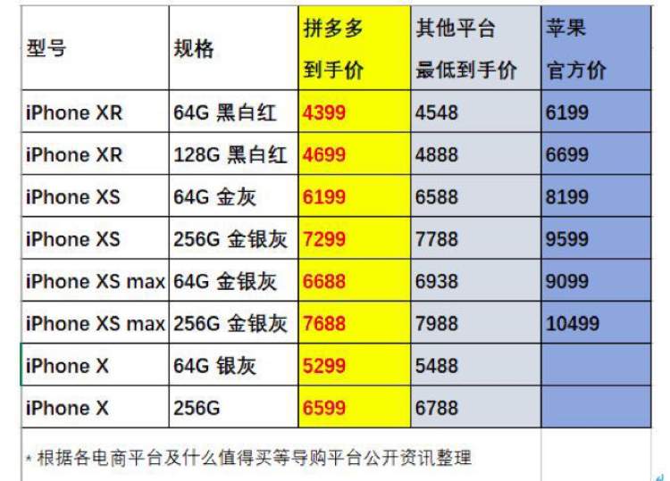 在拼多多平台,iPhone XS Max 256G版本售价7688元,较官方价10499元降幅2811元,相较于苹果官网9599元,便宜了1911元。